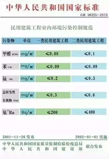 关于室内空气质量标准,目前有两个,即《室内空气质量标准》(GB/T18883-2002)和《民用建筑室内环境污染控制规范》(GB50325-2010)